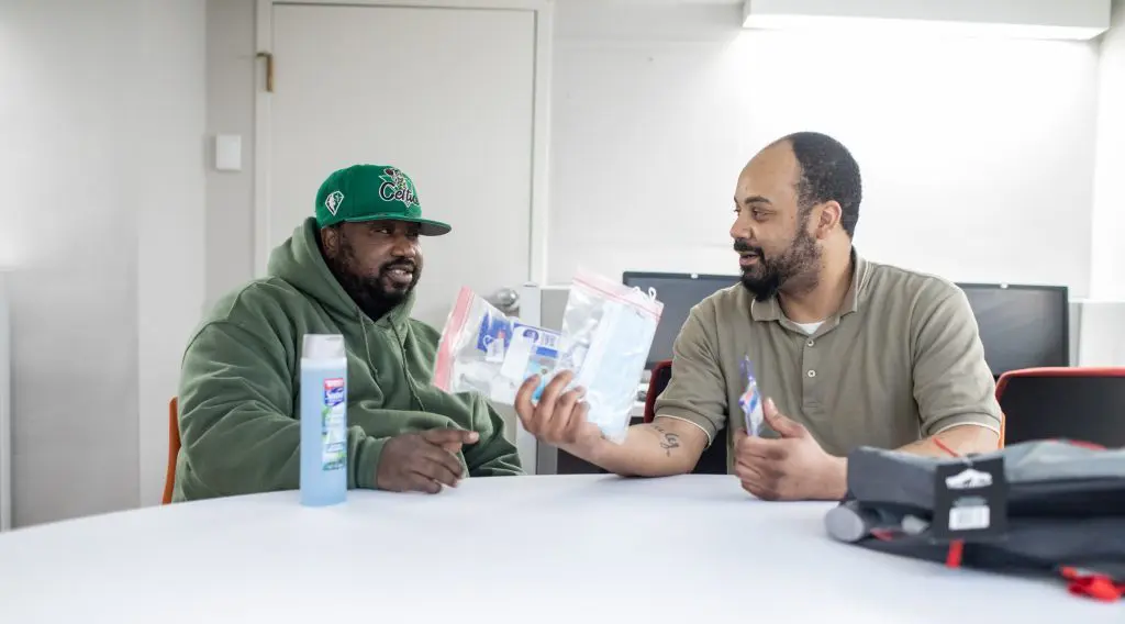 For those who are new to St. Francis House, the Hospitality Desk in the Lobby is their first stop. There, guests meet with a Guest Engagement Liaison to receive a St. Francis House orientation and ID that helps them access many of our programs and services, including on-call case management or mental health counseling.