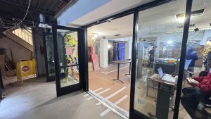 On Tuesday, June 10th, nine new shower stalls were delivered, and the next phase of work on the front entrance kicked off — this included additional demo, new wall construction, and framing in preparation for new door installation. By mid-June, the old lobby doors were completely removed, with full re-framing and installation expected by early July.